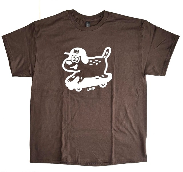 スケボーに乗ったワンチューが大きくプリントされた、シンプルで使いやすいTシャツ。 カラー ブラウン サイズ XL ボディ ギルダン(ウルトラコットン) 素材 綿100%